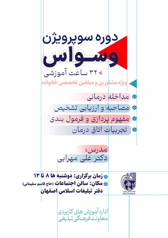 1404/10/03دوره سوپرویژن وسواس ویژه مشاورین و مبلغین تخصصی خانواده - مداخله درمانی - مصاحله و ارزیابی تشخیص - مفهوم پردازی و فرمول بندی -تجربیات اتاق درمان مدرس: دکتر علی مهرابی دوشنبه ها ساعت 8 تا 12 اداره آموزش های کاربردی دفتر تبلیغات اسلامی اصفهان